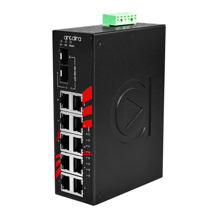 10-port industriell ubemannet bryter, 2 FTP porter, EOT: -40 ° til 75 ° C