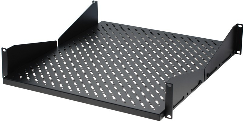 Uttrekkbar hylle for montering i 19" stativskap, sort 1U hylle