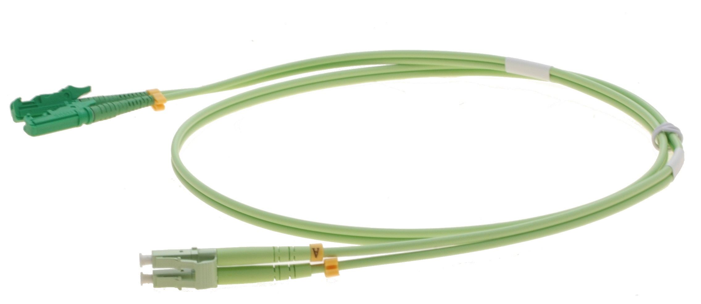 Fiber cable, multimode, APC E2000 / LC, 3m, 50 / 125my, OM5, lime, LSZH, Duplex
