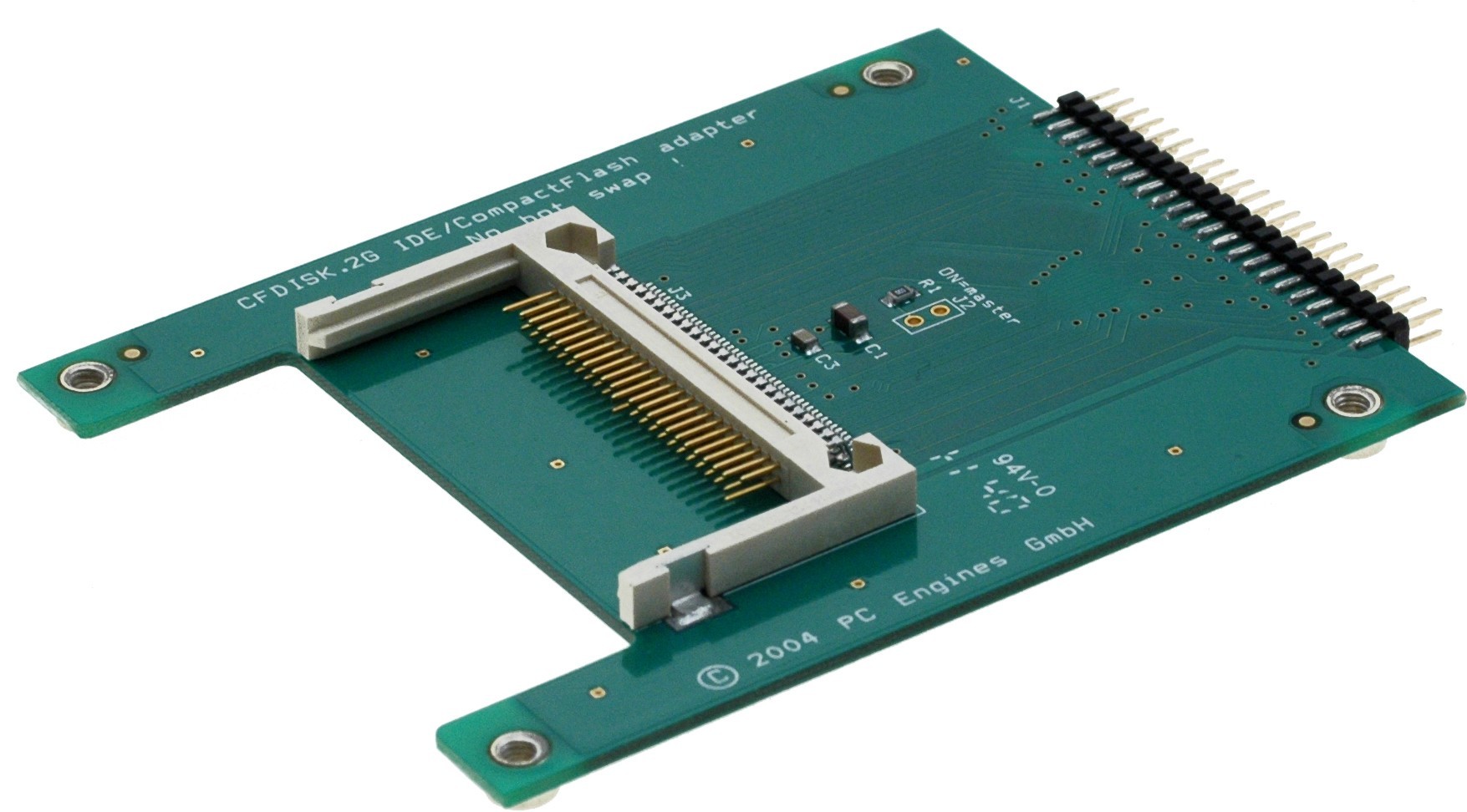 CompactFlash reader will be seen as a hard drive connected to the IDE interface. This solution is advantageous in embedded systems and thin clients where there is no room for a normal hard drive. One can now get CF card up to 64 GB, but even with an industrial CF card of 16 GB, there is plenty of space to install an operating system. With one of these CF card adapters it is thus possible to have a system without a normal hard drive. The transfer rate is typically 10 MB / s depending on the CF type. CF cards have a lower power than a hard drive. Note the use of adapters, it is only industrial CF card that can be booted from.