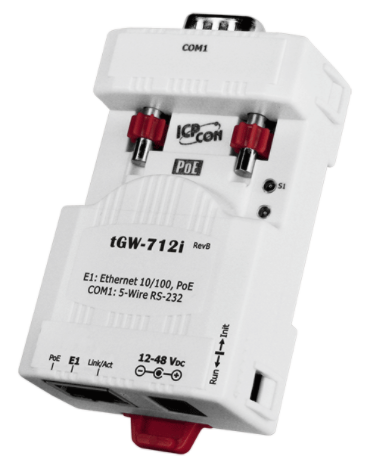 MODBUS / TCP to serial RTU Master Slave, Gateway, 1 x RJ45, 1 x RS232 isolated, -25 - + 75 ° C, PoE, or 12 - 48VDC