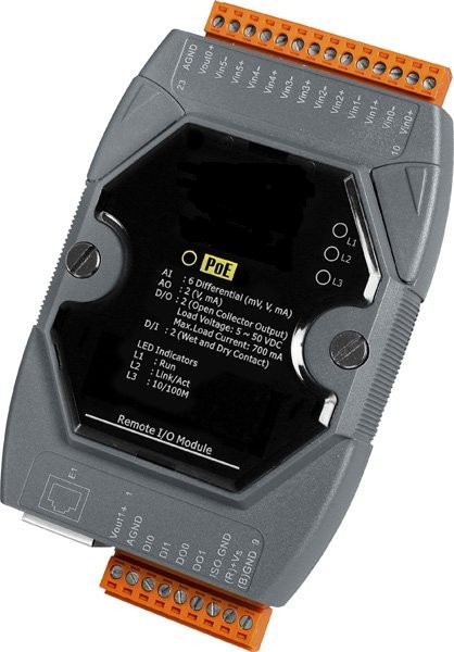 This module L-CON8R supports Modbus / TCP protocol to make seamless integration with SCADA software available. It has 8-channel power relay outputs. Each power relay contact support classification as 5 A @ 250 VAC or 5 VDC 30 A @.