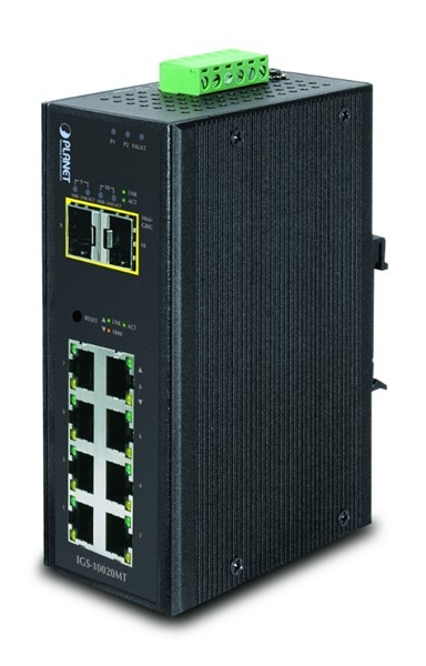 10-ports administrert svitsj 8 x 10/100/1000Mbit RJ45. Fiber 2 x 100/1000 Mbit SFP, -40 - +75 °C 12-48VDC, 24VAC