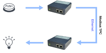 I fjernautomatiseringsapplikasjoner, gjennom et punkt-til-punkt-nettverk, kan brukere overføre inngangsverdier direkte til utgangskanaler gjennom et par MODBUS-seriemoduler.