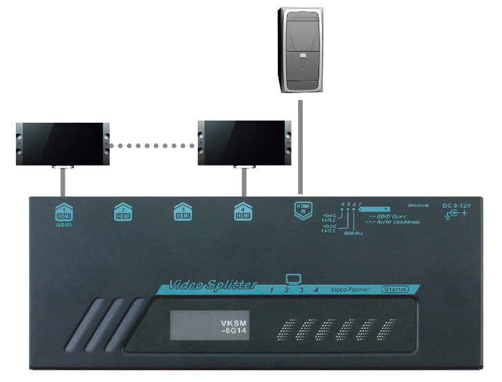 4K@60Hz DisplayPort deler 1 x DP inn og 3 x DP ut. Med Multi-Stream. Dobbel DP++-modus. Speilmodus og utvidet modus