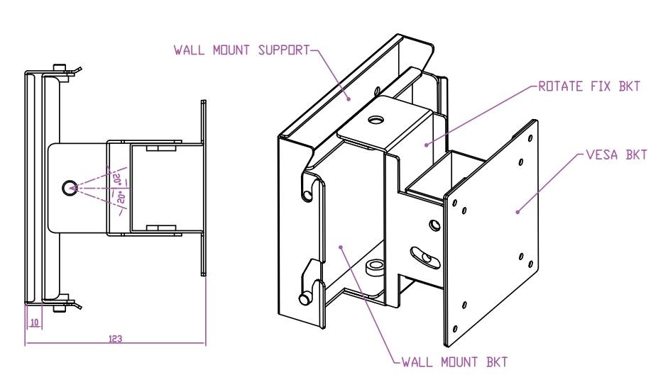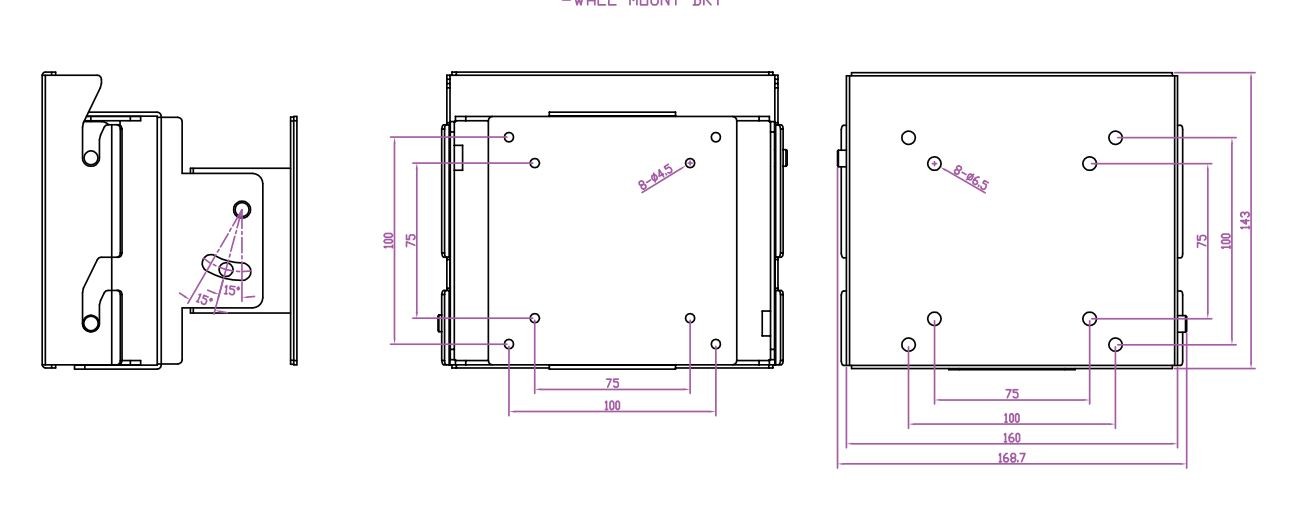 Veggmontert VESA-brakett VESA 75/100 rustfritt stål 304 skjerm- eller panel-PC-veggbrakett