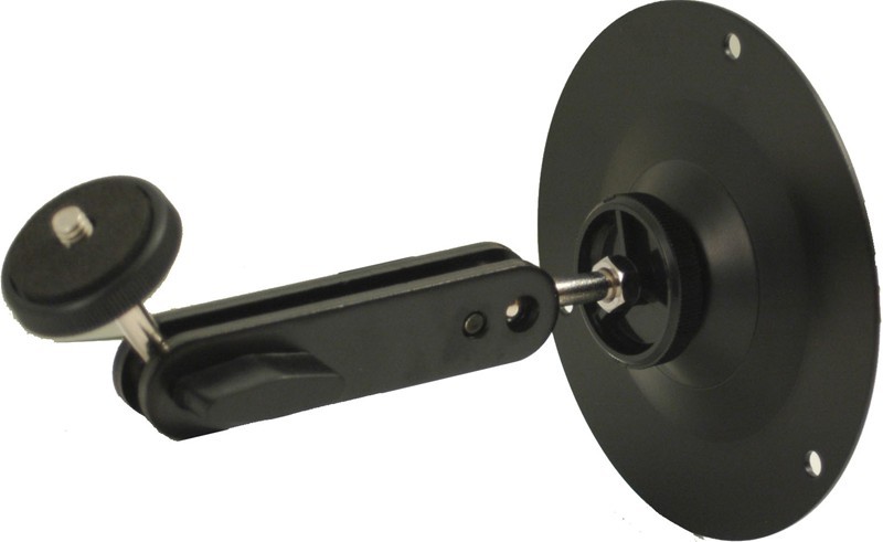 Indendørs kameraholder af plast og metal. Vippeled og 3 skruehuller til væg-/loftmontage. Længde: ca. 10 cm (KAM-FOD-I1):