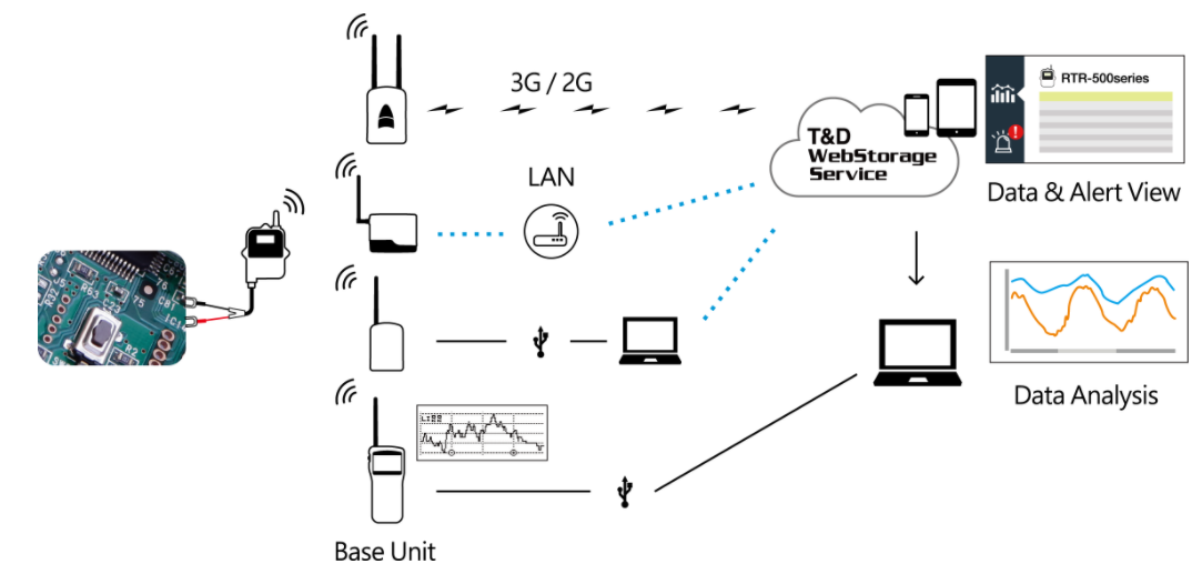 GSM / LTE / 4G / GPRS basestasjon for T & D dataloggere. Mobil datainnsamling fra trådløse T & D-meter. Cloud Service.