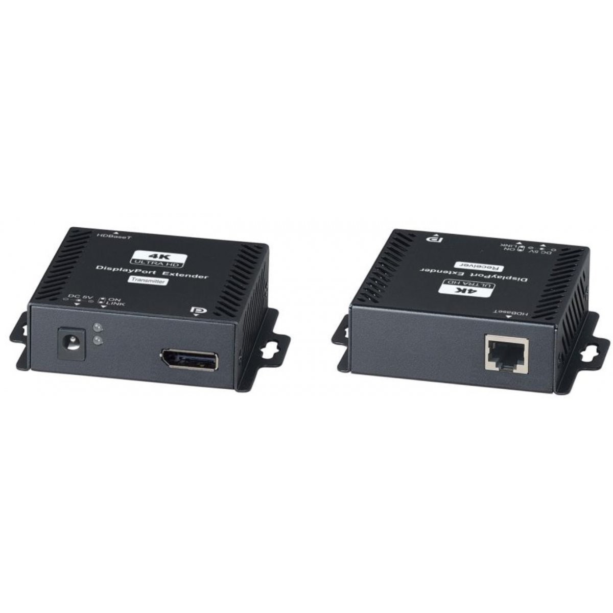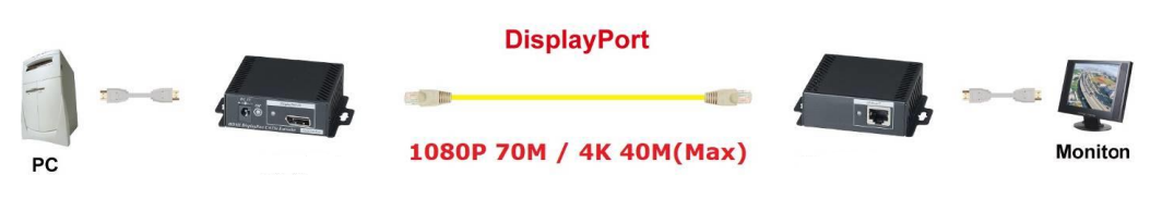 DisplayPort Extender 4K opp til 100 meter over CAT6A, 4K60 70m, Full HD 100m. Sett. 12VDC
