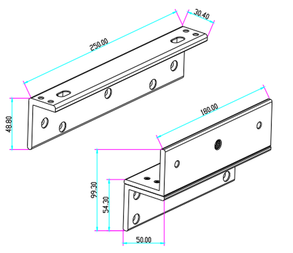Mål: 250 x 49 x 30 mm og 180 x 50 x 50 mm