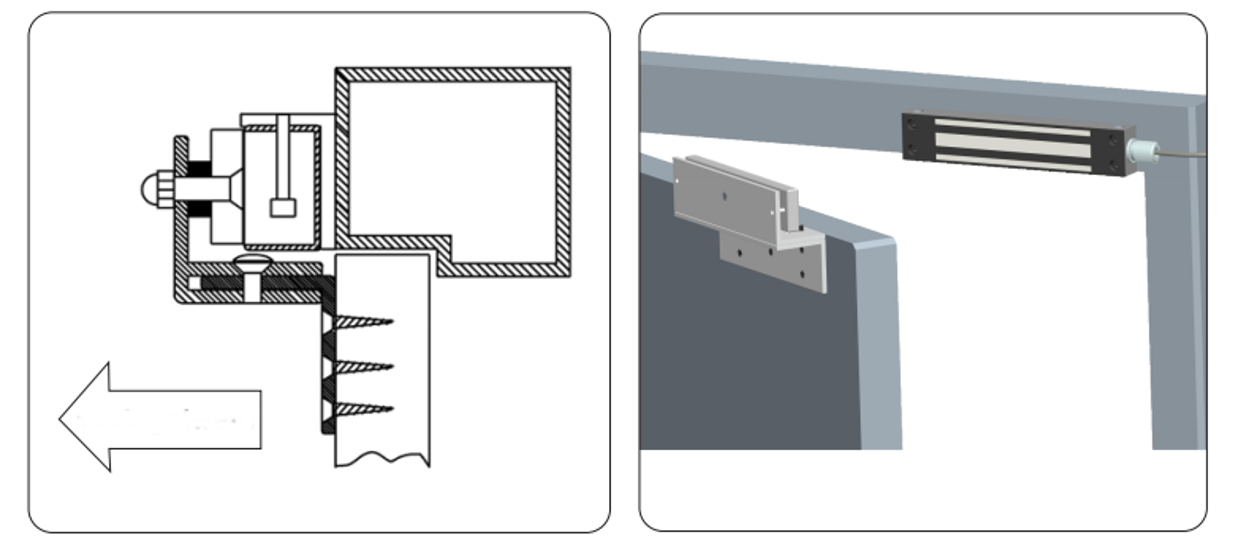Fitting for dørmagneten 280kg -yxx typer. Passer til dører som åpner innover, hvor holdemagneten er på karm-siden. Ekstr. alu.