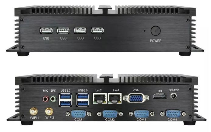 Fanless PC Windows XP / 7/8 / 10 Intel Celeron 2xlan 4xrs232 com, 8x USB, HDMI + VGA
