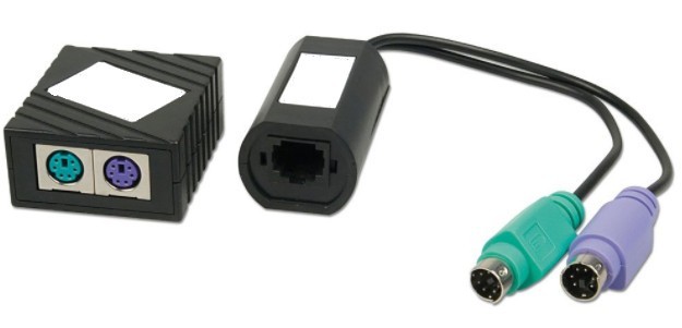 Passiv, krever ingen strøm - Mottaker: 2 x PS / 2 og 1 x RJ45-kontakter
