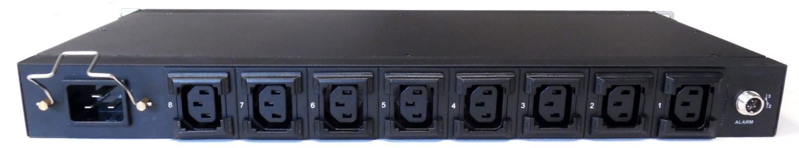 19" PDU med 8 x låsbare IEC-C13-utganger.