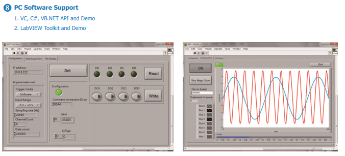 ETHIO8AI8IO-P-I er en data-overvåkningsanordning med høy hastighet med en innebygd Ethernet-kommunikasjonsport for overføring av data over et nettverk, og omfatter 8 biter. høyhastighets-16-bits analog inngangskanaler (200 kHz sample-og holde for alle 8 kanaler), fire digitale inngangskanaler og fire digitale utgangskanaler. Modulen har en programmerbar inngang hold til alle analoge kanaler (± 5 V og ± 10 V), og den digitale utgang kan settes til utgangskortslutnings og overbelastningsvern. Tellerverdien av 4-kanals-DI tellere lav hastighet, blir en-kanal høyhastighetsteller låst av ADC samplingstiden synkronisme. ETHIO8AI8IO-P-I tilveiebringer også 4 kV ESD beskyttelse samt 2,500 VDC isolasjon i modulen.