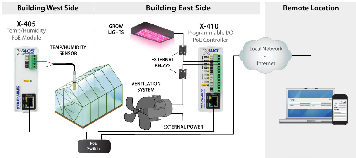 Disse modulene har funksjonelle likheter med standard programbare logikkregulatorer (PLC) og i mange tilfeller kan de brukes som web-aktiverte PLCer. Det er imidlertid forskjeller mellom X-4XX-modulene og PLC. PLCer er vanligvis programmert ved hjelp av stige logikk, i stedet for X-4xx-serien enheter programmert enten ved hjelp av den enkle websiden-baserte "oppgavebyggeren" eller ved å skrive et grunnleggende skript. X-4XX-serien modulene er konfigurert og betjent med en nettleser uten behov for tilpasset konfigurasjonsprogramvare. X-4XX-serien ble bygget fra riper til moderne nettverkstilkobling og støtter ulike protokoller som HTTP, HTTPS, MODBUS / TCP, SNMP og mer.