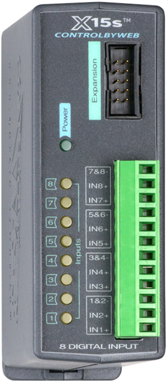 8 Kanal Digital Input Expansion Modul for X-400 og X-600 Controller fra ControlbyWeb. 8 x DI 3-26VDC.