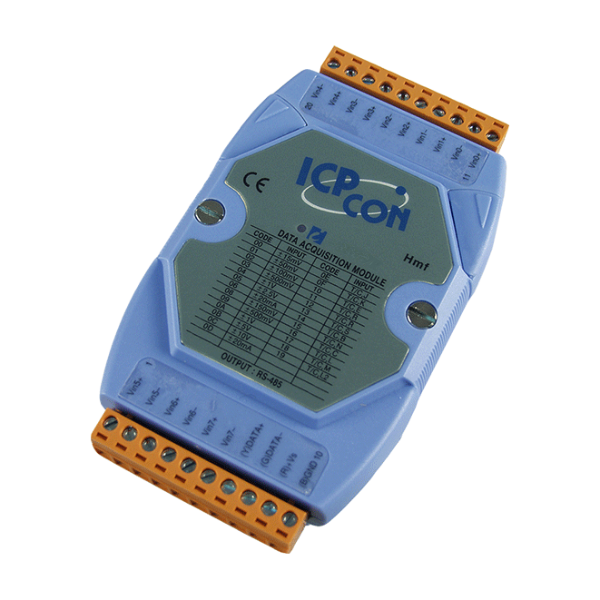M485-AI8-I+ er en inngangsmodul som inkluderer 8 differensielle analoge innganger. Spenning eller strøm kan velges for alle analoge inngangskanaler via en jumper, og hver kanal kan konfigureres for et individuelt område. Forspenning kan være fra ±15 mV til 10 V, strøminngang kan være enten +4 til +20 mA, 0 til +20 mA eller ±20 mA. Opptil 8 forskjellige analoge inngangstyper kan kobles til en enkelt modul. Overspenningsbeskyttelse på opptil 240 Vrms er gitt.
