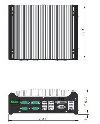 Vifteløs industri-PC i7 Kabylake (8550U) 2xRS232, 1x ETH, 7xUSB, VGA, HDMI, Veggfeste 12VDC