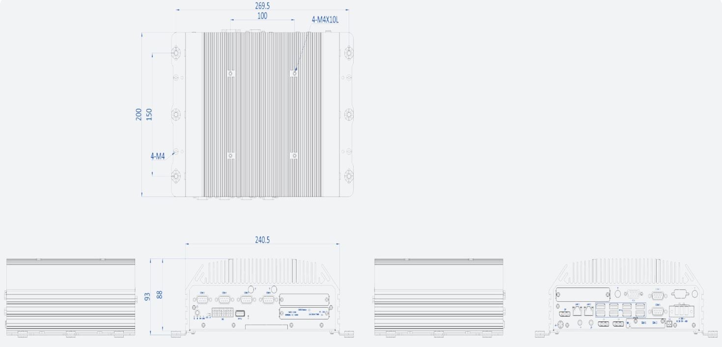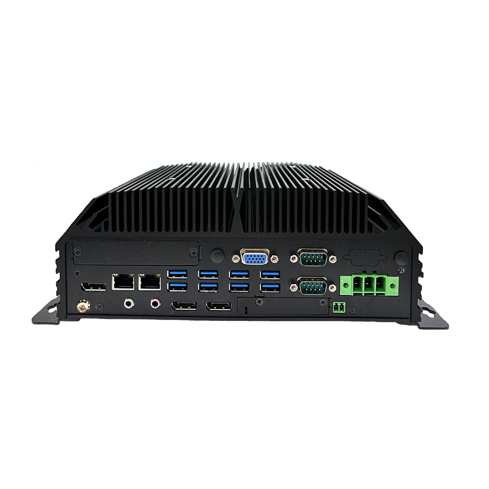 Vifteløs innebygd PC Gen. 13/12 LGA1700, 2x2,5 Gbe, 3xDP, 1xVGA, 9~48V DC, -40°C ~ 70°C, 9xUSB3.2, 6xRS232/422/485 RAID
