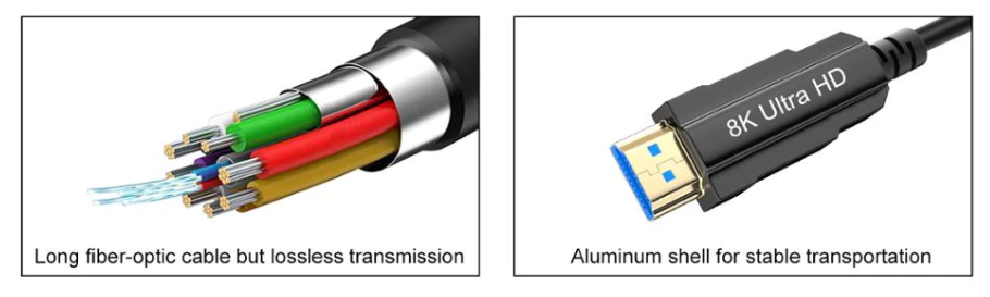 Vanntett Armored Fiber HDMI 2.1-kabel, 8K med innebygd nettverkskanal (Ethernet) 10 meter AOC