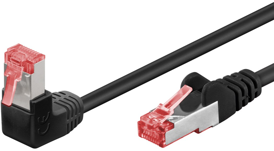 Katt. 6 Nettverkskabel, RJ45, STP, svart, vinkel ned. 1 meter