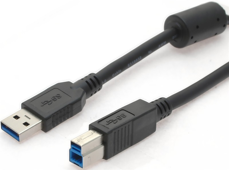 USB 3.0 kabel med ferrit, A han – B han, AWG28, sort, 2,0m