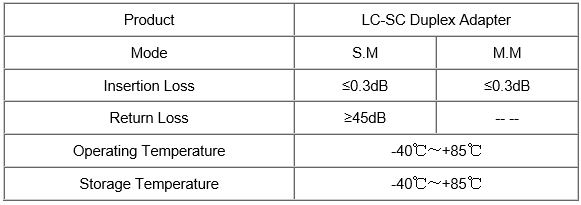 SC-LC / LC-SC-kontakt, Dupleks, Enkeltmodus eller Multimodus, -40 ~ +85°C