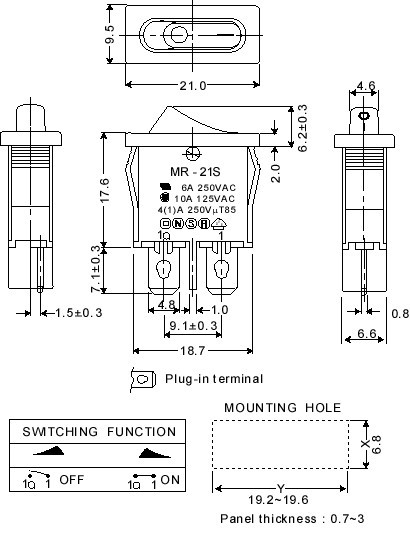 4-polet vippebryteren 13x19mm PÅ / AV-250VAC 6A PÅ-bryteren