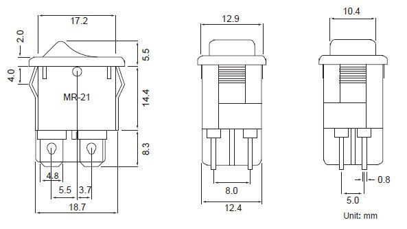 AT bryteren til PC-er med AT strømforsyning til 4-polet vippebryteren til 13 x 19 mm