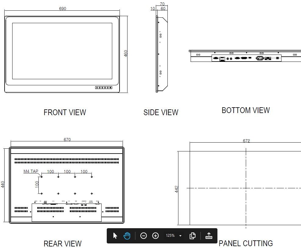 19 "Marine Panel Monitor, vanntett IP66, støvtett IP54, 1280 x 1024, LED baklys, 250 nits, VGA 5:4 format