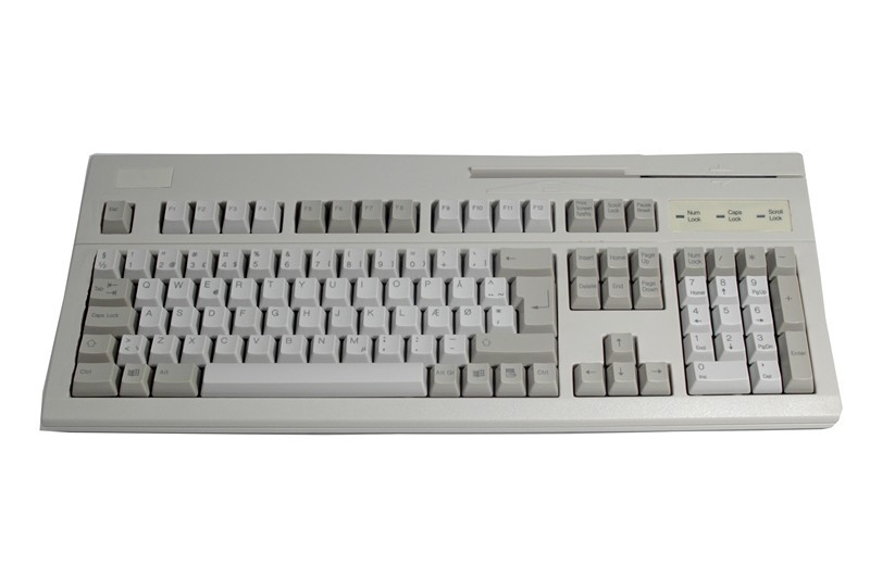 Beige tastatur i full størrelse med magnetisk kortleser.