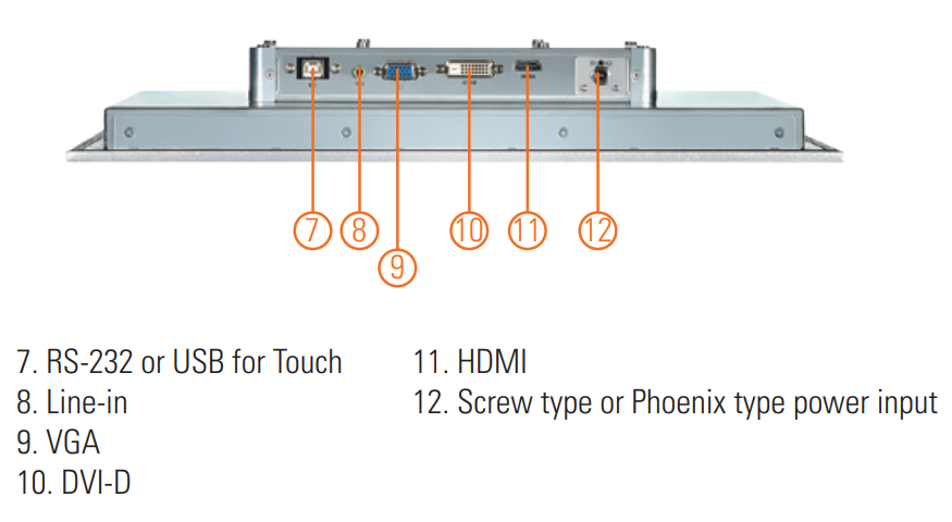 MON17 "P-TU er i metallhuset og er beregnet for industriell bruk og for montering på panel / VESA / stativ eller en bord. . All I / O-funksjon med flere signalinnganger