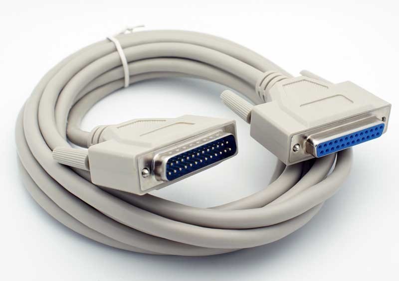 DB25 Male to Female wired straight through for parallel and serial applications. Extend your existing RS-232 serial or parallel cable. Fully molded connectors with thumbscrews. All 25 conductors wired straight through.