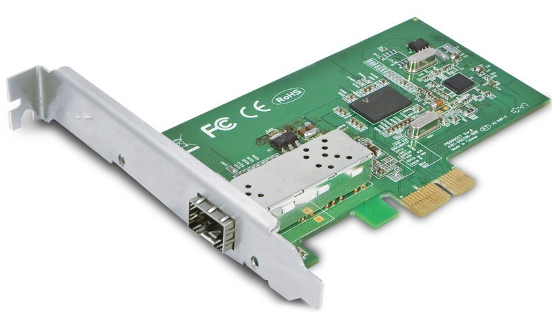Gigabit netkort til single- eller multimode fiber, alt afhængig af hvilket SFP-modul, der bliver isat.