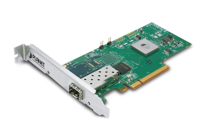10 Gigabit netkort til single- eller multimode fiber, op til 10 km kabel afhængig af hvilket SFP+ modul, der bliver isat.