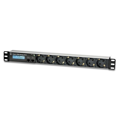 PDU med 2 x effektmåling. Via nettverk, 7 x Schuko, opp til 16A, inngang til ekstern sensor.