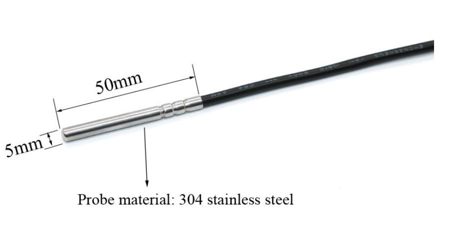 3-leder PT 100 sensor i metallhus ø5 x 50 mm, - 50 – +100°C, 3 meter kabel