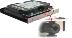 Der er flere fordele ved at benytte vibrationsdæmpere. For det første beskyttes harddisken mod vibrationer, som er en hyppig årsag til sammenbrud af harddiske og for det andet dæmpes støjen fra harddisken væsentligt. Skinner, ramme og skruer medfølger.
