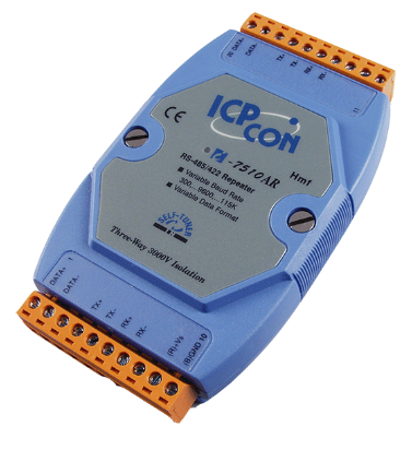 I-7510AR gir 3-veis optisk isolasjon mellom ett stykke RS-422/RS-485 strømsideutstyr og resten av systemet. Den kan også brukes som en repeater for å utvide overføringen av et eksisterende nettverk. I tillegg kan et RS-485-system utvides utover begrensningen på 256 noder som er pålagt av standarden. Den kan også brukes til å konvertere et firetråds RS-422-signal til et 2-tråds RS-485-signal, og omvendt.
