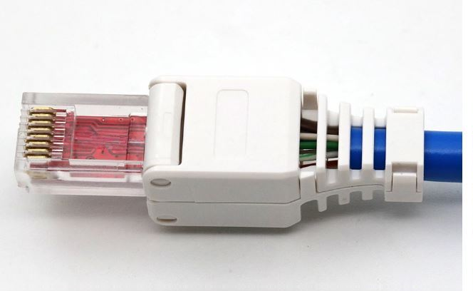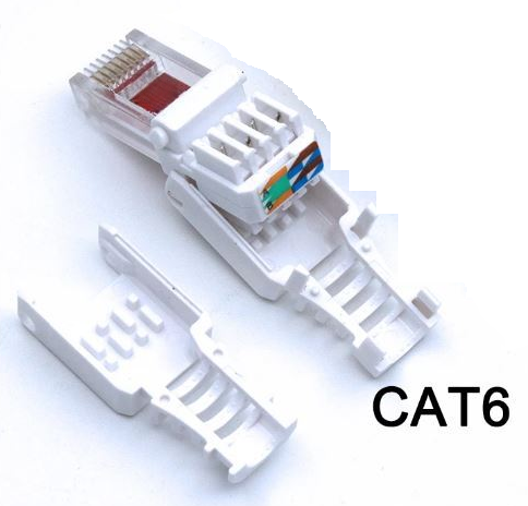 RJ45 Cat6 UTP-kontakt, montert uten bruk av krympetang