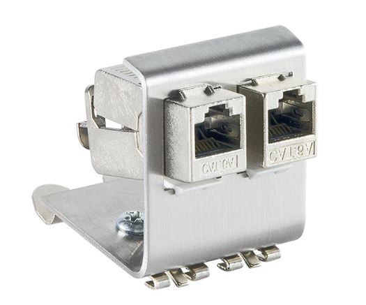RJ45 DIN-skinneadapter for 2xRJ45 Keystone-moduler Metall