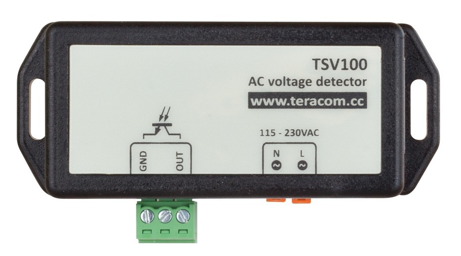TSV100 er en vekselstrømsdetektor med optoisoleret åben kollektorudgang. Det registrerer spænding i to områder - fra 85 til 250 VAC (standard) og fra 170 til 250 VAC. Sortimentet kan indstilles ved hjælp af jumper inde i detektoren.