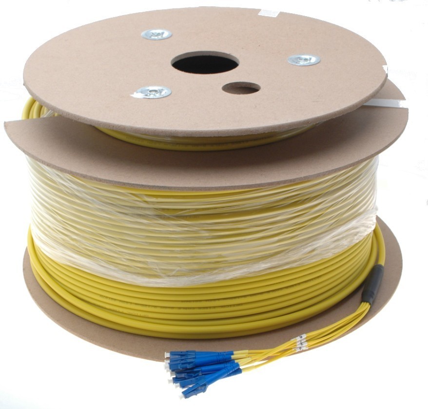 LSZH fiberkabel med 8 x LC-kontakt. Kommer i gult Singlemode 9/125 μm.