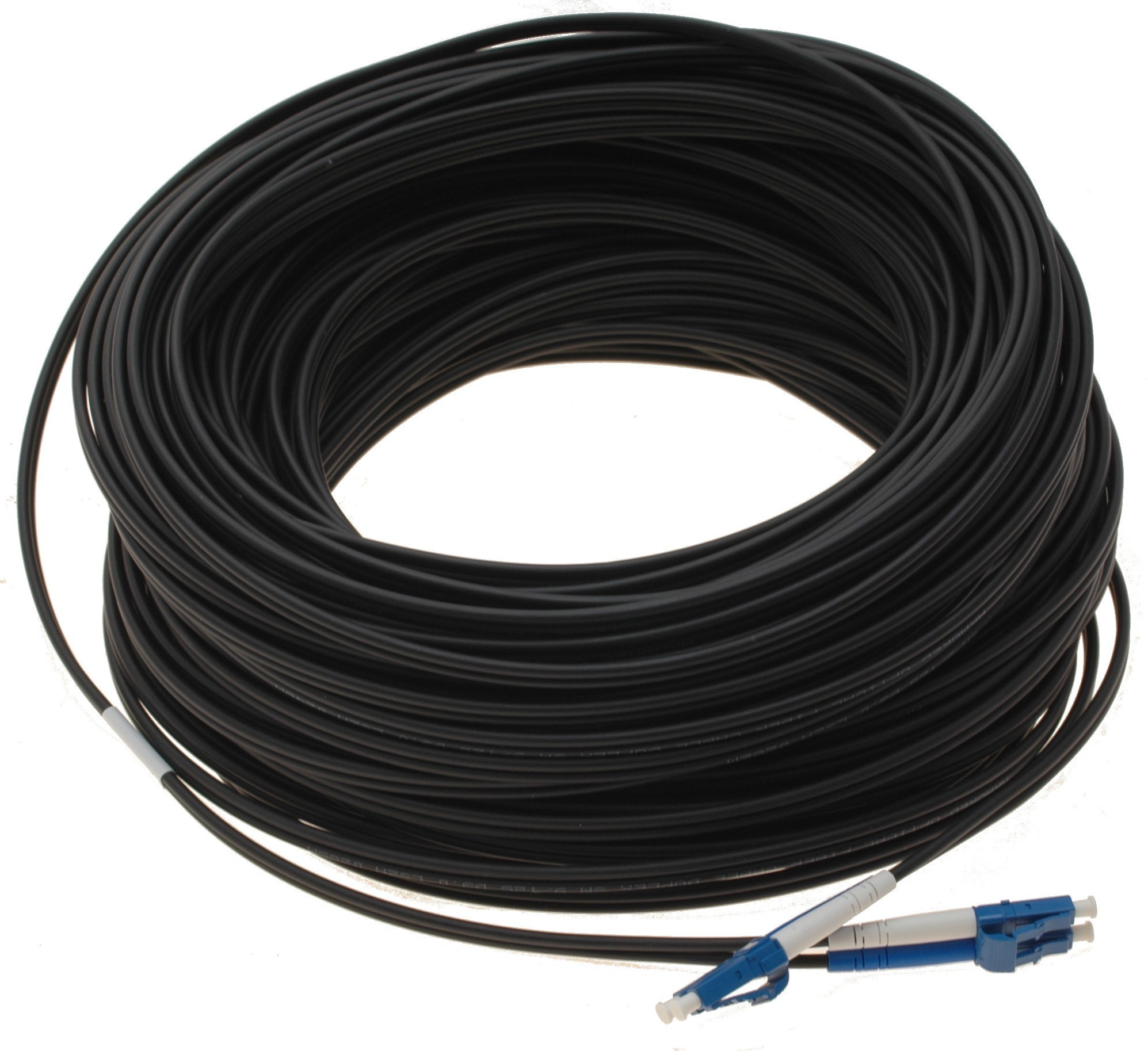 3.0 mm dobbelt fiberoptisk kabel med fleksibel armering af rustfrit stål. Velegnet til installationer i industrielt krævende miljøer. Tåler kortvarig trækbelastning på 300 Newton og vedvarende trækbelastning på 160 Newton (16 kg).