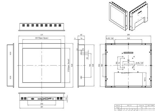 Dimensioner Hele monitor: 460(w) x 392(h) x 64.5(d)mm. Display område: 376.320 x 301.056mm