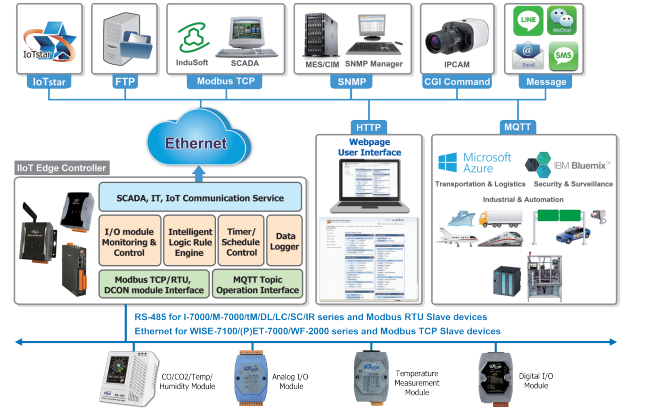 støtter SNMP, SMTP , FTP, Modbus RTU og DCON