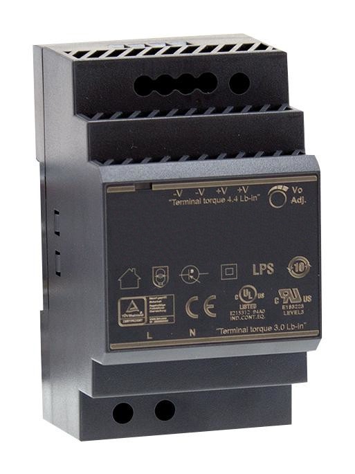Økonomisk og ultraslank strømforsyning som kan tilpasses til å bli installert på TS-35 / 7.5 eller TS-35/15 DIN-skinner. Huset er smalt, noe som gjør det mulig å spare plass i et skap. DC24V2.5A-D strømforsyning er designet med plasthus som effektivt kan forhindre elektriske farer.