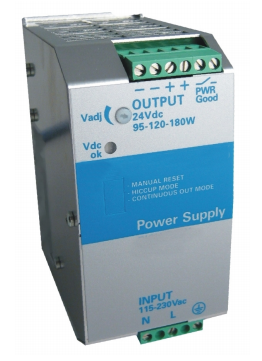 24VDC 5A (120Watt) Strømforsyning 115-230VAC, DIN Rail, -25°C - +70°C