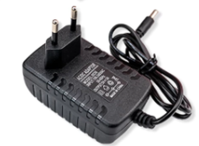 Strømadapteren er veggtype med 1 meter kabel med strømkontakt på 5,5 mm / 2,1 mm.